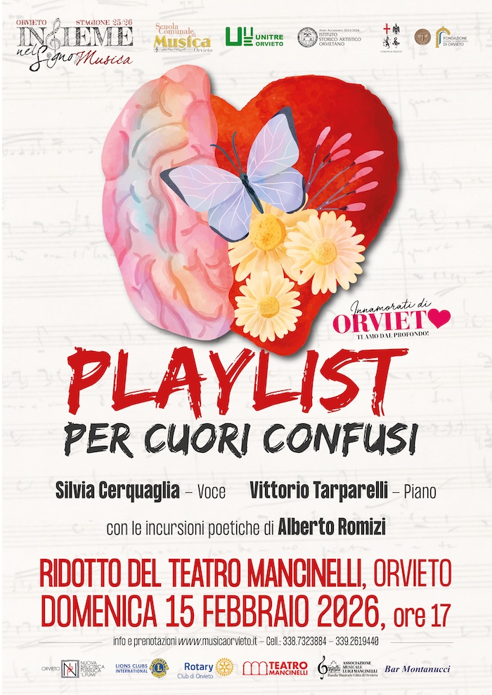 PlayList per Cuori Confusi, domeni 15 febbraio 2026 al Ridotto del Teatro Mancinelli di Orvieto